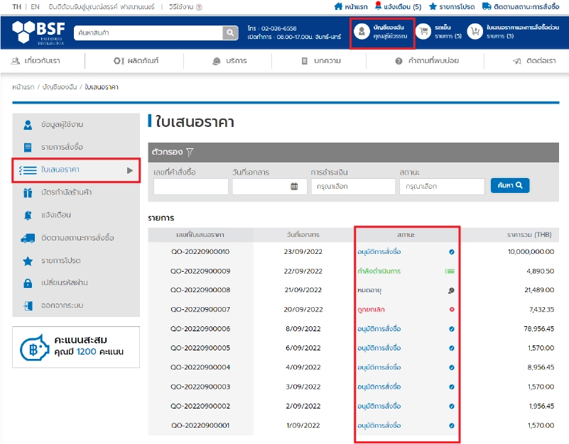 สถานะของใบเสนอราคา ประกอบด้วยสถานะดังนี้
