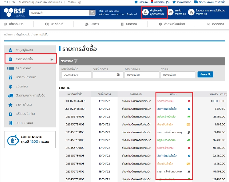 สถานะของสั่งซื้อ ประกอบด้วยสถานะดังนี้