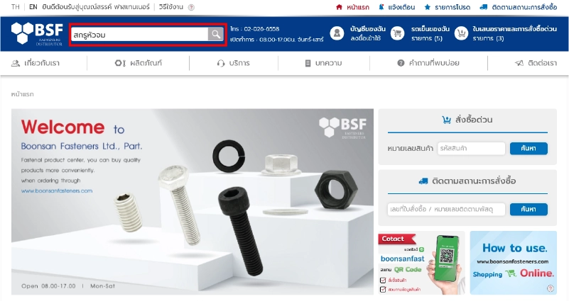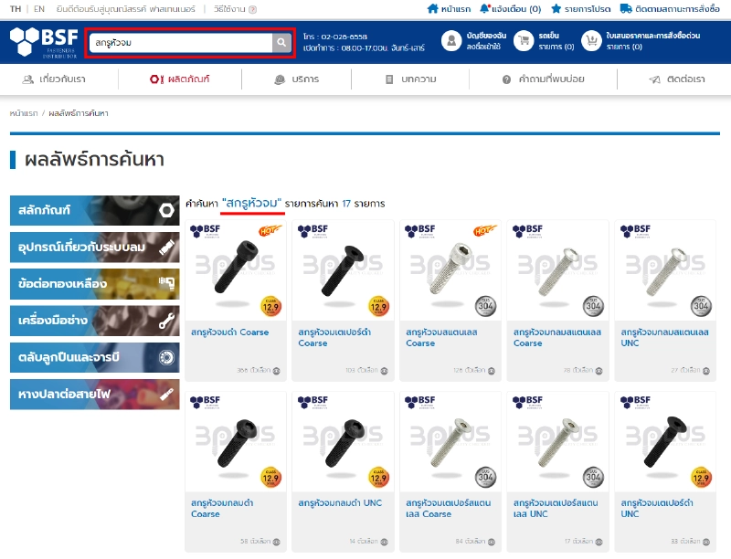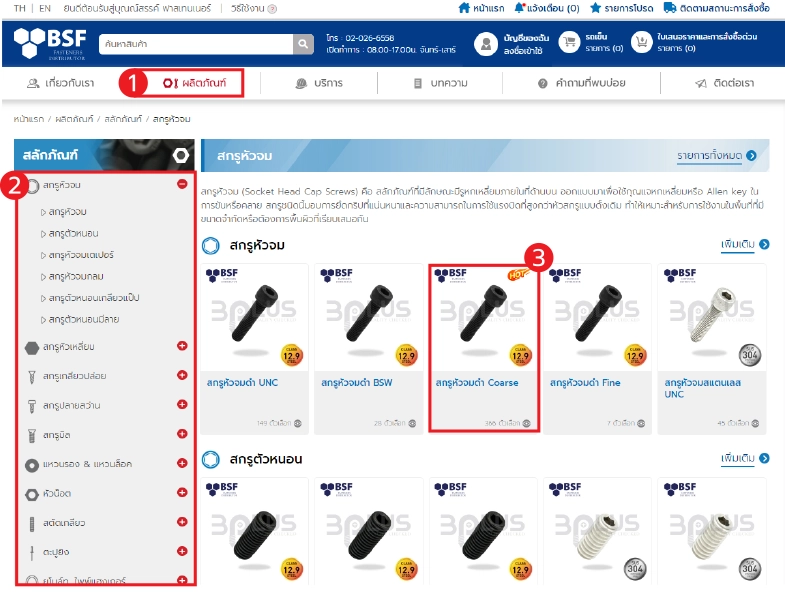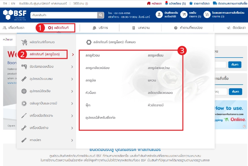1. สามารถค้นหาได้จาก เลื่อนเมาส์ไปที่ “ผลิตภัณฑ์” บนแถบกลุ่มหลักที่เมนูด้านบน (ใต้ช่องค้นหาสินค้า)